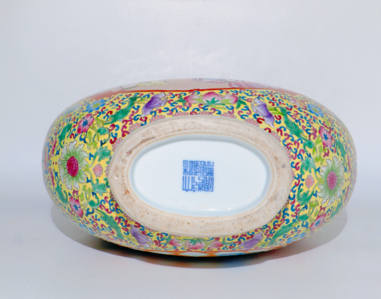 此瓶選用上乘瓷胎,黃地粉彩光澤溫潤細膩,粉彩色澤明亮鮮潤,歷經歲月仍層次分明,充分展現乾隆宮廷瓷器藝術的尊貴與神秘。每條金彩線、每瓣花卉、每個螭龍耳都低語皇宮深處的秘境傳說,寓意吉祥,散發文化與權威韻味。存世稀少,收藏門檻極高,既是藝術鑑賞至高標的,更是一件承載歷史、宮廷精神與神秘儀式的絕對重器。