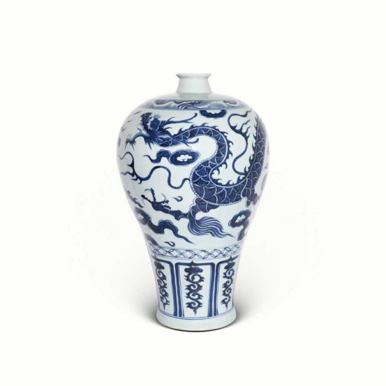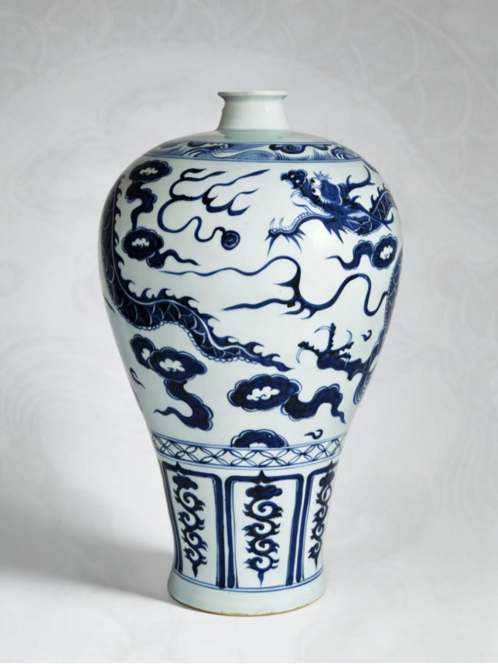 此件《元青花雲龍紋大梅瓶》,为元代末帝元顺帝(妥懽帖睦尔)宫廷旧藏,自元末起即为皇室秘宝,数百年来未曾流落民间。在存世元青花龙纹梅瓶中,其显赫身世与完美品相堪称独步,即便与美国圣路易博物馆所藏同类器相比,亦在工艺细节与传承序录上更胜一筹。